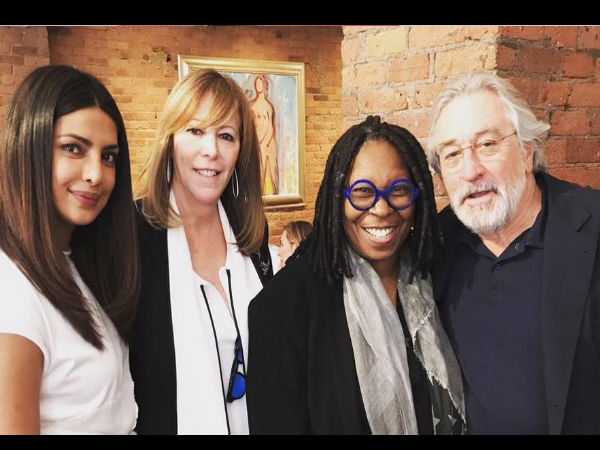 हाल ही में प्रियंका ने हॉलीवुड की दिग्गज एक्ट्रेस वूपी गोल्डबर्ग, फिल्म प्रोड्यूसर जेन रोजेंथ और दिग्गज अभिनेता रॉबर्ट डी नीरो के साथ तस्वीर ट्विटर पर पोस्ट की। वहीं इन लोगों के साथ प्रियंका के बारे में एक बात तो साफ है कि आने वाले समय में प्रियंका हॉलीवुड में एक बड़ा नाम साबित होने वाली हैं।
