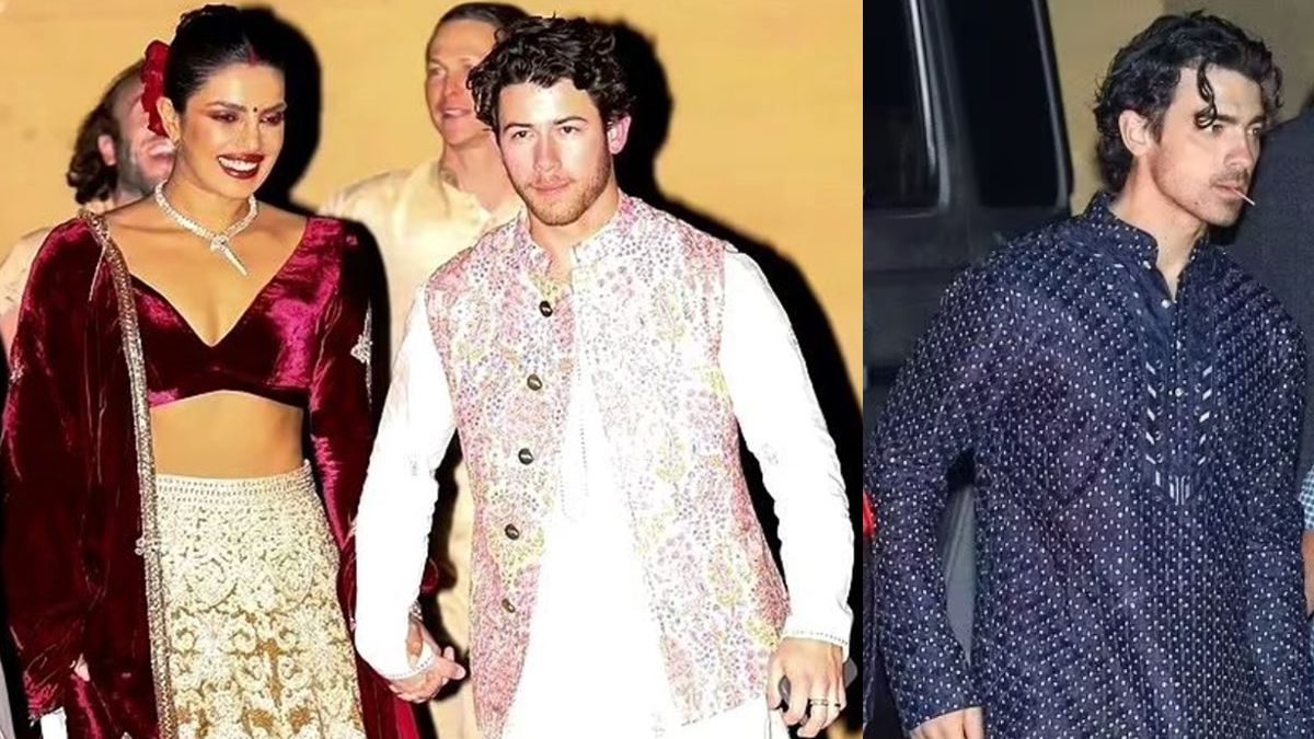निक जोनस ने फ्लोरल प्रिंट जैकेट के साथ सफेद कुर्ता पायजामा पहना था। जोड़े को अपने मेहमान से मिलते समय हाथ में हाथ डाले चलते हुए क्लिक किया गया। इसके अलावा निक जोनस के भाई जो जोनस का लुक भी सामने आया और इस दौरान वो कुर्ते में काफी अच्छे लग रहे थे।