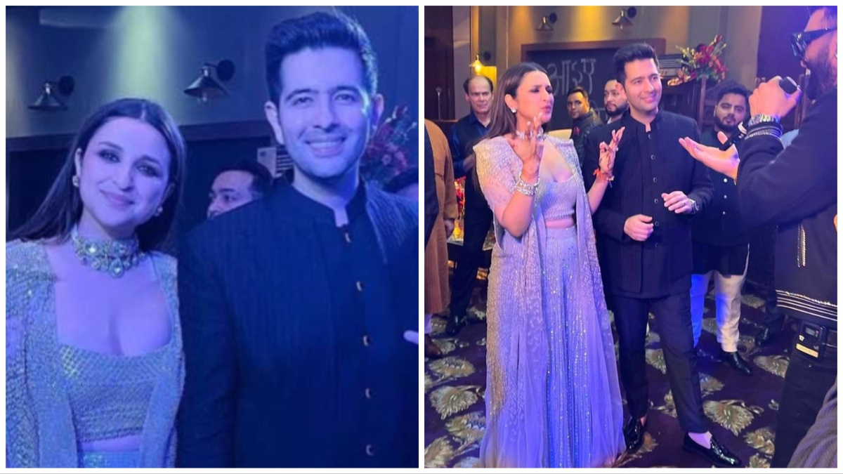 Raghav Parineeti Sangeet Photos Out: एक्ट्रेस परिणीति चोपड़ा और आम आदमी पार्टी नेता राघव चड्ढा रविवार को शादी के बंधन में बंधने जा रहे हैं। उनके संगीत समारोह का एक वीडियो सोशल मीडिया पर छाया हुआ है। शनिवार रात को संगीत समारोह का आयोजन किया गया। मेहमानों को उदयपुर हवाई अड्डे पर आते देखा गया और फिर उन्हें बोट से आलीशान द लीला पैलेस ले जाया गया। दूल्हे और दुल्हन के परिवार ने एक भव्य संगीत रात की मेजबानी की, जहां सलमान अली और नवराज हंस सहित अन्य लोगों ने परफॉर्म किया।