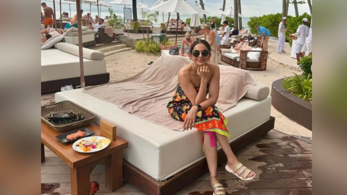 Rakul Preet Singh Beach Bed Pic- रकुल प्रीत सिंह इस वक्त खबरों का हिस्सा हैं। उन्होने इंस्टाग्राम पर कुछ तस्वीरें पोस्ट की हैं जिसमे वो बीच पर नजर आ रही हैं। जी हां, बीच पर रकुल प्रीत सिंह ने एक बेड डाला हुआ है जिसपर बैठकर वो धूम का आनंद ले रही हैं।