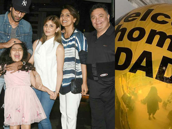 नीतू कपूर ने एक गुब्बारे की तस्वीर साझा की है जिसमें लिखा है.. वेलकम होम डैड। उनकी गैरमौजूदगी में उनके फैंस ने उनके लिए काफी दुआएं की थी और अपने सुपरस्टार के जल्दी ही स्वस्थ होने की कामना की थी।