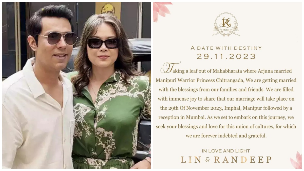 इस पोस्ट में बॉलीवुड एक्टर रणदीप हुड्डा ने एक पोस्ट में बताया है कि वह और लिन 29 नवंबर 2023 में शादी करने जा रहे हैं। रणदीप हुड्डा और लिन लैशराम की शादी इम्फाल में होगी और फिर मुंबई में रिसेप्शन होगा।