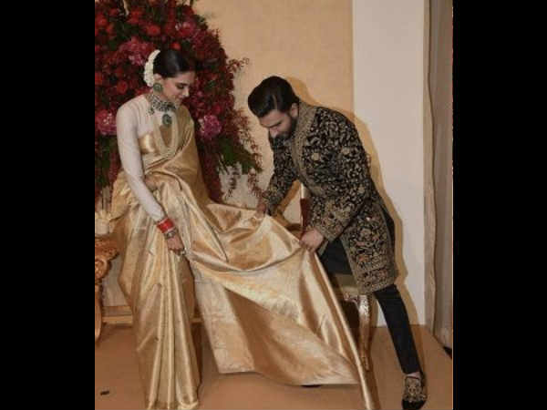 Awww Pics: रिसेप्शन पर दीपिका की साड़ी ठीक करते दिखे रणवीर सिंह, इस तरह ली एंट्री