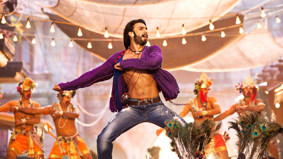 इस दौरान एक्टर पूरी एनर्जी के साथ घूम-घूम कर डांस करते हैं और ढोल बजाते हैं। तभी एक ढोल फट जाता है और रणवीर सिर के बल उसमे गिर जाते हैं।