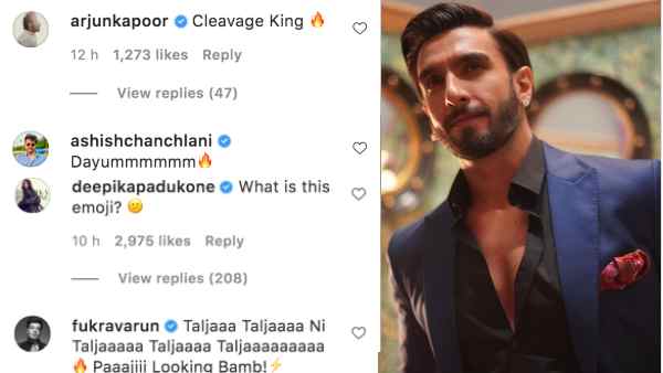 अर्जुन कपूर ने इस तस्वीर पर कमेंट करते हुए लिखा कि ये बेस्ट क्लीवेज है। इसके साथ ही दीपिका पादुकोण से लेकर रणवीर सिंह के सर्कस को स्टार वरूण शर्मा ने भी उनकी तस्वीरों पर कमेंट करते हुए लिखा - पाजी, बम लग रहे हो। वहीं दीपिका पादुकोण को रणवीर सिंह के इमोजी से एतराज़ था।
