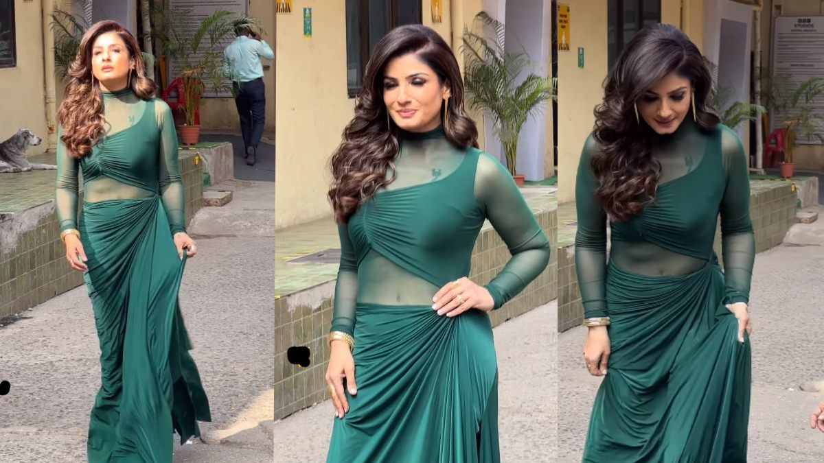 रवीना टंडन इस लुक में इतनी हॉट लग रही हैं कि आप उनकी उम्र का अंदाजा नहीं लगा सकते हैँ। रवीना ने इस दौरान ग्रीन कलर का ट्रांसपेरेंट सूट पहना था। आर पार दिख रही इस ड्रेस में रवीना ने अपने हार्ट के ऊपर बने टैटू को फ्लॉन्ट किया है।