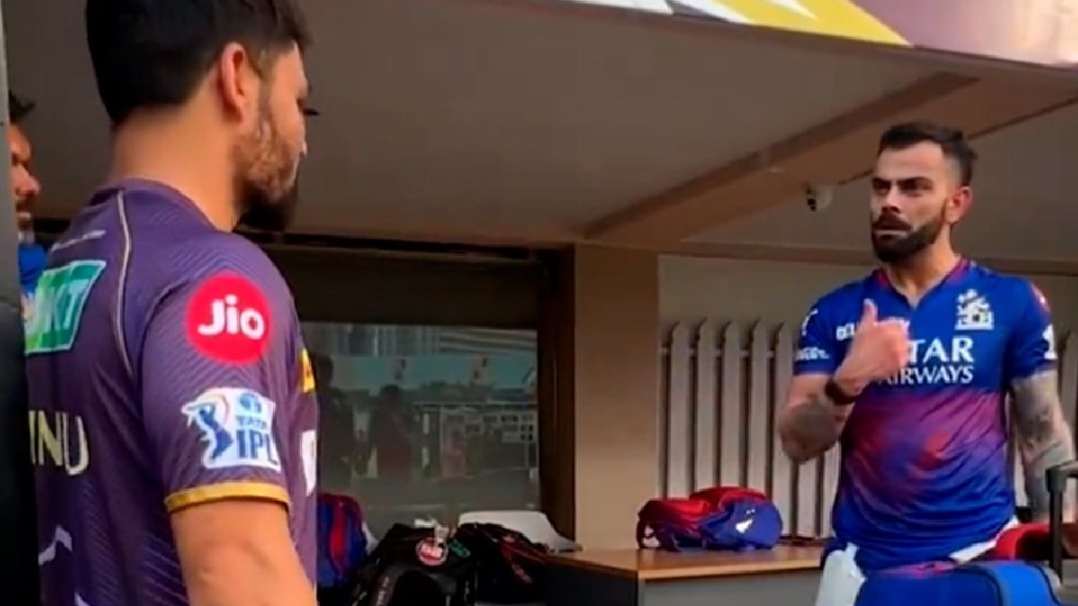 रिंकू सिंह आरसीबी के बल्लेबाज विराट कोहली से कहते हैं जो बैट उन्होंने दिया था वो स्पिनर के खिलाफ टूट गया। कोहली पूछते हैं, 'मेरा बैट स्पिनर पर तोड़ दिया तूने... कहां से टूटा?' इसके बाद रिंकू एक और बैट को दिखाते हुए विराट को बता रहे हैं कि वह बैट निचले हिस्से से टूट गया। इस पर विराट बोलते हैं, 'तो मैं क्या करूं भाई?' केकेआर के बल्लेबाज रिंकू कहते हैं, 'कुछ नहीं मैं तो बस बता रहा था।' फिर कोहली कहते हैं, 'कोई नहीं, बता दिया तूने बढ़िया किया।' इसके बाद वह मुस्कुराते हुए कहते हैं, 'मुझे इसकी जानकारी नहीं चाहिए।'