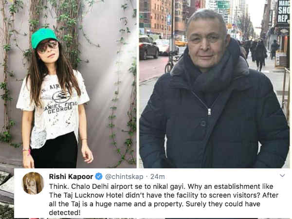 वहीं ऋषि कपूर ने ताज होटल पर भी सवाल उठाए कि मान लो कनिका ने झूठ बोलकर एयरपोर्ट पर स्क्रीनिंग वालों को झटका दे दिया लेकिन ताज होटल को तो अपने मेहमानों की स्क्रीनिंग करनी चाहिए थी।