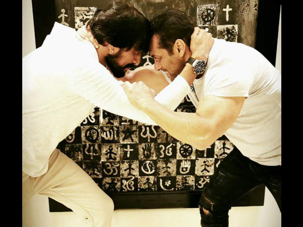 साउथ के स्टार सुदीप ने सलमान खान के साथ अपनी तस्वीर शेयर करते हुए लिखा- No this isn't another poster ....💪🏼 This is jus how he bonds if he luvs. 🤗🤗 Thank u @BeingSalmanKhan sir,, For the place u have given me in ur life. Im honoured & blessed.