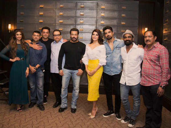 इस तस्वीर में सलमान खान के साथ 'रेस 3' की पूरी टीम दिख रही है। निर्देशक रेमो डिसूजा, निर्माता रमेश तौरानी, जैकलीन, डेजी शाह, बॉबी देओल और साकिब सलीम। पहले दिन जैकलीन और डेजी शाह के डांस सीक्वेंस को शूट किया गया।