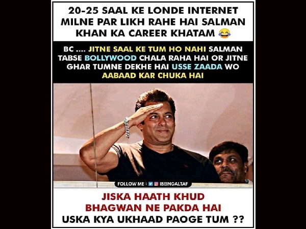 जितनी ट्रोलर्स की उम्र नहीं है उतना बड़ा उनका करियर है। फैंस ने कहा कि जो लोग भाई को ट्रोल करते हैं वो समझ लें की भाई 50 के पार हैं लेकिन उनकी लोकप्रियता में रत्ती भर भी गिरावट नहीं है।