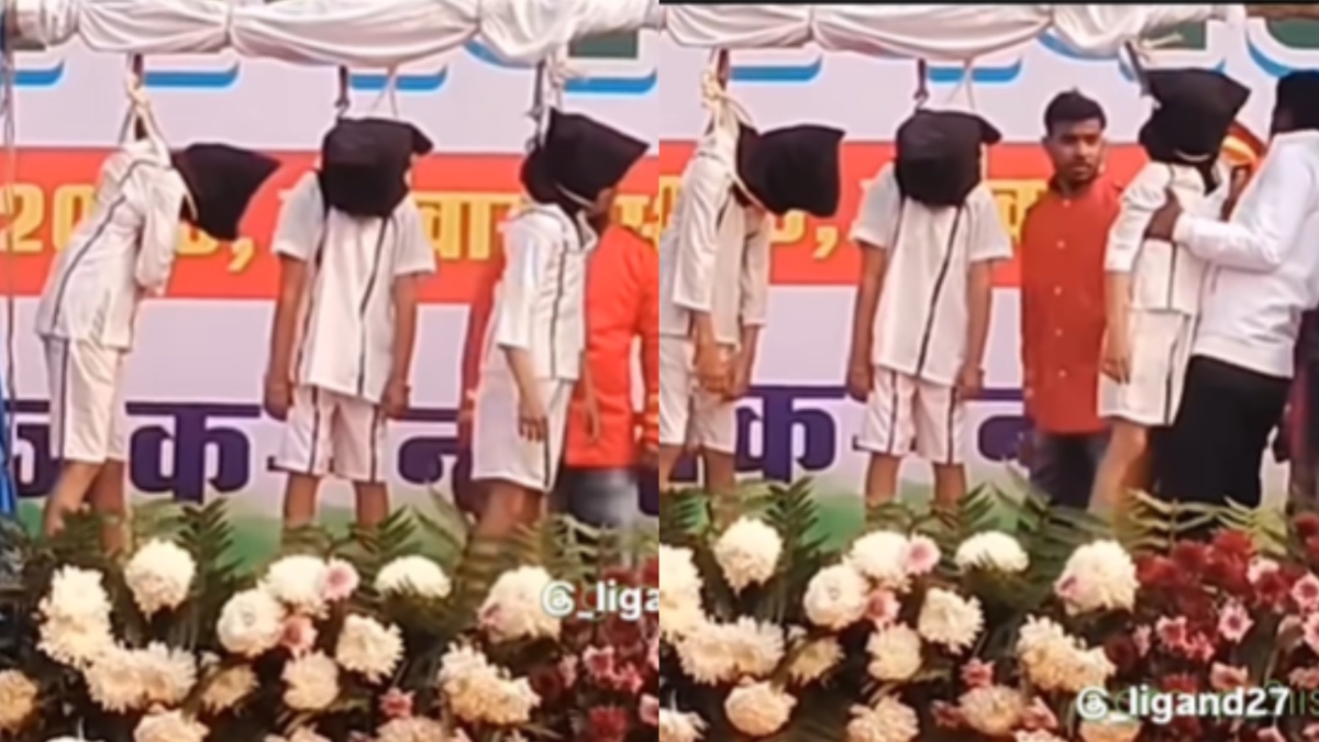 वायरल हो रही है इस वीडियो में देखा जा सकता है कि तीन बच्चे कैदी के कपड़े पहने हुए नजर आ रहे हैं और फांसी के फंदे से लटके हुए हैं। इस वीडियो को देखने के बाद में काफी सारे लोग तो हैरान है और यह वीडियो रूह कंपा देने वाला है। वीडियो को देखने के बाद में ऐसा लग रहा है कि सच में इन बच्चों को फांसी लग गई है।