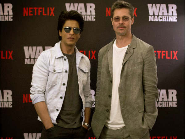 शाहरुख खान ने ब्रैड पिट के साथ वार मशीन के प्रमोशन के दौरान नजर आए।