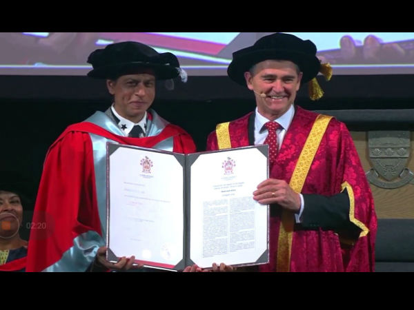 बता दें कि शाहरुख खान को ये उपाधि 'मीर फाउंडेशन'के जरिये जरूरतमंद बच्चों, महिलाओं के सशक्तिकरण के लिए प्रयास करने, योगदान देने और बॉलीवुड फिल्मों से दर्शकों का मनोरंजन करने के लिये मेलबर्न के 'ला ट्रोब विश्वविद्यालय'ने उन्हें प्रतिष्ठित डॉक्टरेट की उपाधि से सम्मानित किया।