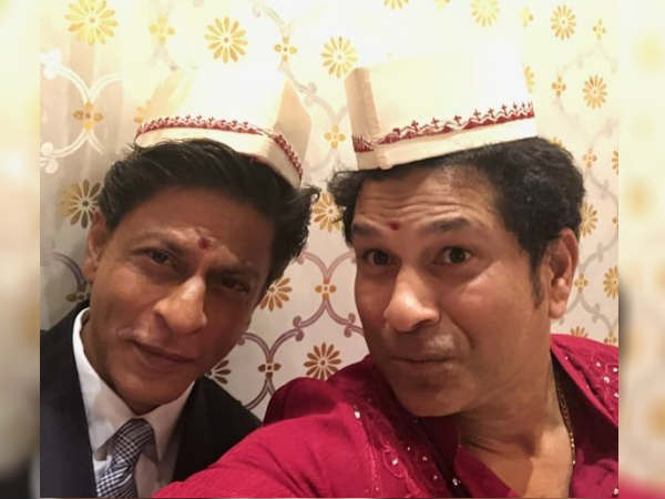 अब इस पार्टी के अंदर की तस्वीरें वायरल होना शुरू हुई है। इनमें शाहरूख खान की दो तस्वीरें तेज़ी से वायरल हो रही हैं। पहली तस्वीर है शाहरूख खान और सचिन तेंदुलकर की एक सेल्फी, पारंपरिक गुजराती टोपी और टीके के साथ।