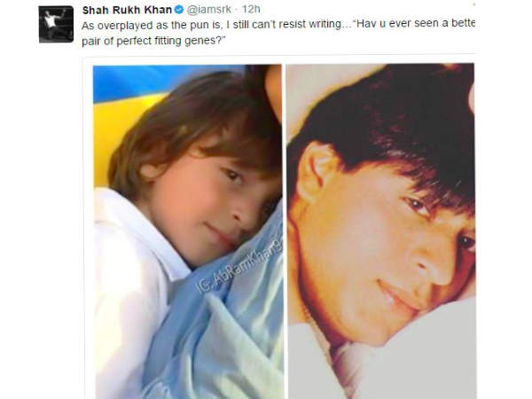 हाल में शाहरुख खान ने भी अपनी और अबराम की एक तस्वीर शेयर की है जिसमें शाहरुख खान और अबराम बिल्कुल एक अंदाज में नजर आ रहे हैं। दोनों की तस्वीर और एक्सप्रेशन बिल्कुल एक जैसे नजर आ रहे हैं। इसके साथ ही शाहरुख खान ने लिखा है कि क्या आपने इससे ज्यादा मिलता जुलता जीन कहीं देखा है।
