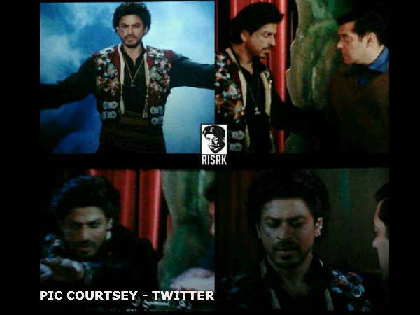 शाहरुख खान इस तस्वीर में सलमान खान के साथ नजर आ रहे हैं। उनका ये अलग अवतार देखकर आप भी वाकई खुशी हो जाएंगे।आपको बता दें कि शाहरुख खान फिल्म में एक जादुगर की भूमिका निभा रहे हैं। कबीर खान ने हाल में शाहरुख खान के कैमियो पर अपना बयान दिया था।