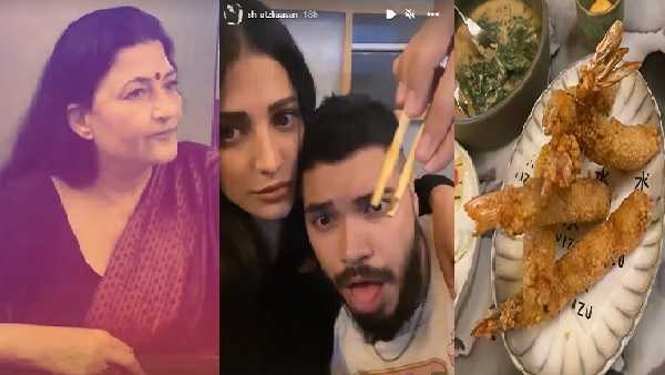 आपको बता दें कि सोशल मीडिया पर वायरल हो रहे वीडियो में साफ देखा जा सकता है कि श्रुति हासन अपने बॉयफ्रेंड शांतनु हजारिका और मां सारिक हासन के साथ डिनर डेट पर पहुंची हैं। वीडियो में सभी लोग डिनर का मजा लेते नजर आ रहे हैं। सिर्फ इतना ही नहीं डिनर के बीच में श्रुति, शांतनु और सारिका ने कैमरे पर मुस्कुराते हुए कई अच्छे पोज भी दिए हैं। श्रुति ने इस डिनर डेट को लेकर दो रील्स भी बनाए हैं। इन रील्स को श्रुति ने अपने इंस्टाग्राम अकाउंट पर शेयर किया है। दरअसल एक्ट्रेस श्रुति हासन ने अपनी इंस्टाग्राम स्टोरी पर एक साथ कई पोस्ट शेयर किए हैं जिनमें वह अपने कुछ करीबियों के साथ नजर आ रही हैं। श्रुति ने एक वीडियो भी पोस्ट किया है।