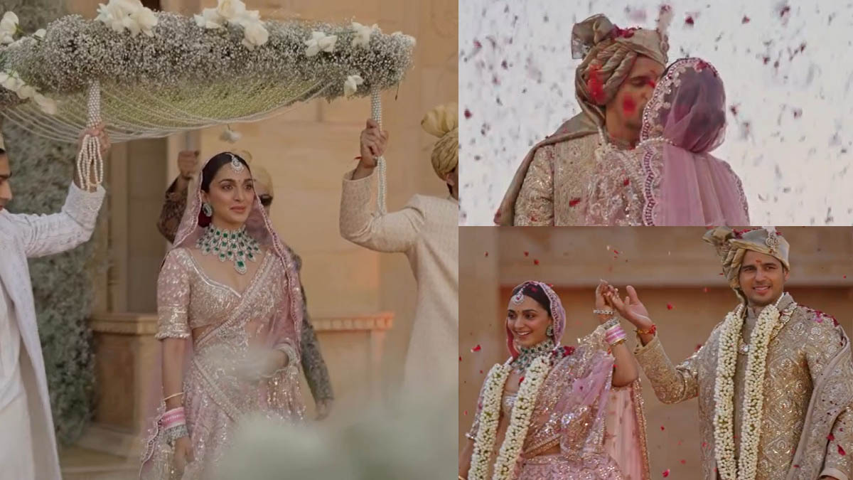 वीडियो के शुरुआत में आप देखेंगे कि कियारा आडवाणी गुलाबी लहंगे में फूलों की चादर के नीचे चलते हुए स्टेज की ओर बढ़ती हैं। वहीं, सिद्धार्थ स्टेज पर उनका इंतजार कर रहे होते हैं। कियारा आडवाणी कुछ ही पलों में सज-धजकर डांस करते हुए स्टेज पर एंट्री मारती हैं। दूल्हे को रूप में देख इशारों ही इशारों में वो सिद्धार्थ से कहती हैं कि, वो अच्छे लग रहे हैं।