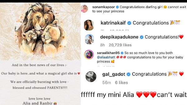 लेकिन परिवार के साथ ही रणबीर कपूर और आलिया कपूर के लिए साथी स्टार्स, को स्टार्स और दोस्त भी काफी उत्साहित हैं। आलिया भट्ट ने जैसे ही अपने इंस्टाग्राम पर इस बात का एलान किया कि वो और रणबीर एक प्यारी सी गुड़िया के मम्मी पापा बन चुके हैं, वैसे ही स्टार्स ने इस पोस्ट पर कमेंट कर उन्हें बधाईयां देनी शुरू कर दीं।
