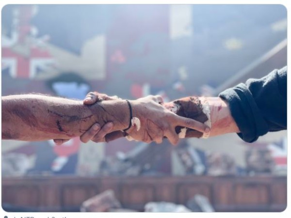 इस तस्वीर में माहौल क्रोध और लड़ाई से भरा नज़र आ रहा है जिसने हम सभी को रोमांचित कर दिया है। एक दूसरे को कस कर पकड़े इन झुलसे हाथों ने हमें अधिक प्रत्याशित कर दिया है जो निश्चित रूप से आरआरआर को मैग्नम ओपस फ़िल्म बनाता है।