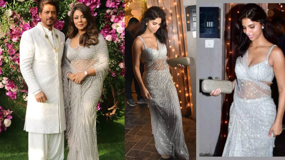 सफेद सीक्वन साड़ी को सुहाना खान मैचिंग ब्लाउज के साथ पहना था। बेहद कम एसेसरीज और खुले बालों में सुहाना खान ने अपने लुक को सिंपल ही रखा था। सुहाना खान के इस लुक ने हर किसी को गौरी खान की याद दिला दी है। अपनी मां की तरह ही उन्होंने मैचिंग क्लच भी लिया था। सोशल मीडिया पर सुहाना खान की तस्वीरें धड़ल्ले से वायरल हो रही हैं।