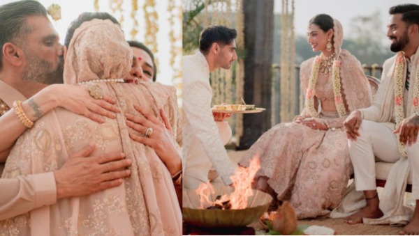 Athiya Shetty Vidaai: बॉलीवुड अभिनेत्री अथिया शेट्टी और क्रिकेटर केएल राहुल की शादी की इनसाइड तस्वीरें सामने आने का सिलसिला अभी तक थमने का नाम नहीं ले रहा है। अब अथिया और केएल राहुल को बधाईयां देते हुए सुनील शेट्टी और भाई आहान शेट्टी ने कुछ तस्वीरें शेयर की हैं जो कि काफी तेजी से वायरल हो रही हैं। इस तस्वीरों में शेट्टी फैमिली की बॉन्डिंग और प्यार साफ तौर पर दिखाई दे रहा है।