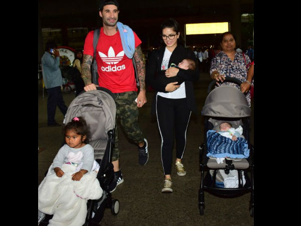 सनी लियोन और उनके पति डेनियल इस समय सबसे खुश मां बाप है क्योंकि इन दोनो एक बार फिर से मां बाप बन गए है और इस बार इनके एक नहीं बल्कि दो बच्चे हुए है। जी हाल ही में सनी लियोन अपने पति और अपने तीन बच्चों के साथ एयरपोर्ट पर स्पॉट किए गए है। इस फोटो में सनी लियोन के ट्विंस भी नजर आ रहे है।