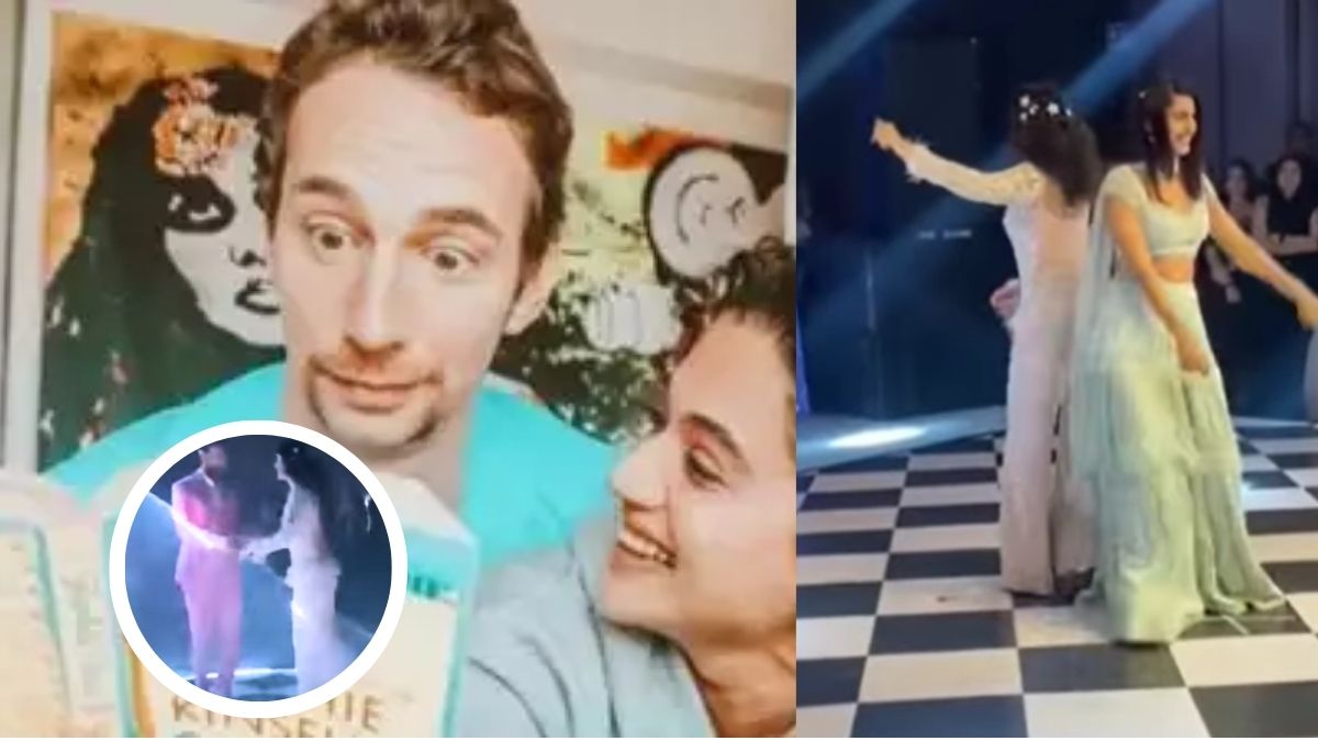 Taapsee Pannu Sangeet Dance Video: बॉलीवुड एक्ट्रेस तापसी पन्नू ने कुछ समय पहले गुपगुप शादी रचा ली थी। फैन्स को एक्ट्रेस की शादी का तब पता चला जब एक्ट्रेस की होली की तस्वीरें वायरल हो रही थीं। बता दें कि होली की तस्वीरों में तापसी पन्नू मांग भरे नजर आ रही थीं। जिसके बाद से ही उनकी शादी की खबरें तेज हुई थीं। हाल ही में एक्ट्रेस की शादी का एक अनसीन वीडियो सामने आया था वहीं अब एक्ट्रेस के संगीत नाइट का भी वीडियो सामने आया है। इस वीडियो में एक्ट्रेस पुराने गानों पर डांस करती नजर आ रही हैं। साथ ही मैथियास बो के साथ के साथ अंग्रेजी डांस भी करती नजर आ रही हैं।