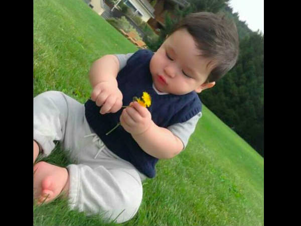 करीना कपूर के बेटे तैमूर अली खान की जब भी तस्वीरें सोशल मीडिया में आती हैं तुरंत वायरल हो जाती हैं। वो इतने क्यूट हैं कि जितनी तारीफ की जाए कम होगी।तैमूर की एक और तस्वीर सोशल मीडिया पर वायरल हो रही है जिसमें वो ग्राउंड में बैठे हाथों में फूल पकड़े हैं और बेहद क्यूट लग रहे हैं।