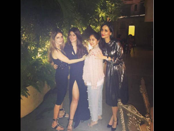 ट्विंकल खन्ना काले रंद के ब्लैक स्लिट ड्रेस में काफी खूबसूरत लग गई थीं तो सुजैन खान और अनु दीवान ने भी ब्लैक ड्रेस ही पहन रखी थी। इसके पहले भी ट्विंकल खन्ना ने रिंकी खन्ना की तस्वीर शेयर की थी और बताया था कि वो भारत आ रही हैं।
