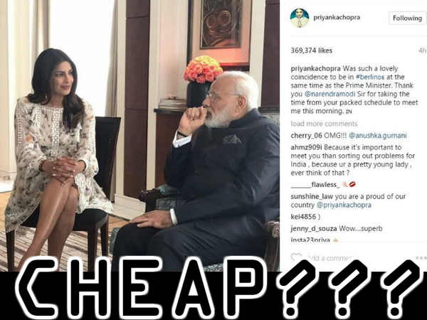 प्रियंका चोपड़ा हाल ही में प्रधानमंत्री नरेंद्र मोदी से बर्लिन में मिली और इसकी खुशी उन्होंने इंटरनेट पर ज़ाहिर की। लेकिन लोगों ने दो ही मिनट में उनकी धज्जियां उड़ा दीं। क्या ये इतना ज़रूरी था?