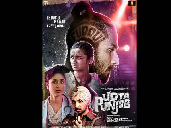 इस पोस्टर में वैसे तो फिल्म के चारों स्टार्स दिख रहे हैं लेकिन शाहिद कपूर का फुद्दू स्टाइल करीना - आलिया और दिलजीत पर भारी पड़ा। फिल्म पंजाब में फैले ड्रग्स के कारोबार पर है।