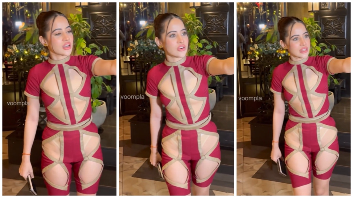 इस दौरान उर्फी हमेशा की तरह ही काफी सेक्सी लुक में दिखाई दीं। जहां पूरी देश ठिठुरन वाली सर्दी की मार झेल रहा है तो वहीं उर्फी इस दौरान काफी रीविलिंग लुक में दिखाई दीं। उर्फी की इस मरून ड्रेस में कलति कट डिजाइन थे जिसमें हसीना का बदन साफ दिखाई दे रहा था।