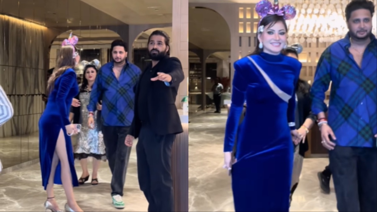 Urvashi Rautela ने पहनी ऊंचे कट वाली ड्रेस, बार-बार खींचकर इज्जत बचाने की कोशिश की