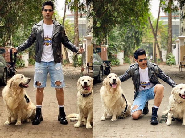 मंगलवार को वरुण धवन ने लेटेस्ट फोटो शेयर की। इस तस्वीर में वह दो कुत्तों के साथ नजर आ रहे हैं। फोटो में वरुण धवन ने हाफ पैंट और व्हाइट टी-शर्ट व ब्लैक जैकेट वियर की है। इस डैशिंग लुक के साथ काला चश्मा भी पहना हुआ है जिसमें एकदम हैंडसम लग रहे हैं। इस फोटो पर अनुष्का शर्मा ने मस्ती की और लिखा कि क्या इन डॉग्स ने तुम्हारी जींस फाड़ दी है?