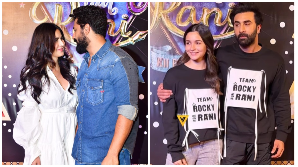 Vicky Katrina Video: बॉलीवुड स्टार रणवीर सिंह और आलिया भट्ट पिछले कुछ दिनों से अपनी आने वाली फिल्म 'रॉकी और रानी की प्रेम कहानी' का जबरदस्त प्रमोशन कर रहे हैं। अब इस फिल्म का ग्रैंड प्रीमियर रखा गया। फिल्म देखने के लिए बी टाउन के तमाम सेलेब्स पहुंचे। इनमे सबसे खास रही विक्की कैटरीना और रणबीर आलिया की जोड़ी।