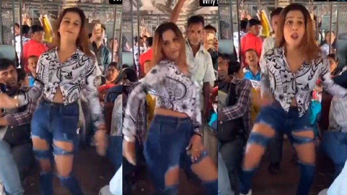 कटी फटी जींस पहनकर लोकल ट्रेन में नाचने लगी सेक्सी गर्ल, पीछे खड़े चचा की फट गईं दोनों आंखे! Video