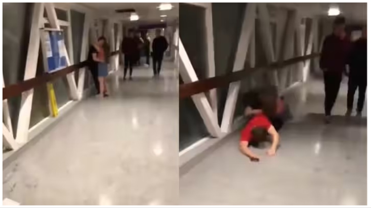 VIDEO: पब्लिक प्लेस पर सरेआम लिप किस कर रहा था कपल, गुस्साए शख्स ने बरसाई लात