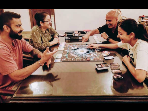 अनुष्का शर्मा की ये ताजा तस्वीर देखकर आप समझेंगे कि वो कितनी ज्यादा मस्ती घर में करती होगीं। अनुष्का शर्मा पति विराट कोहली और अपने माता-पिता कर्नल अजय कुमार शर्मा और आशिमा शर्मा के साथ एक बोर्डगेम (मोनोपोली) खेलती हुई नजर आ रही हैं।