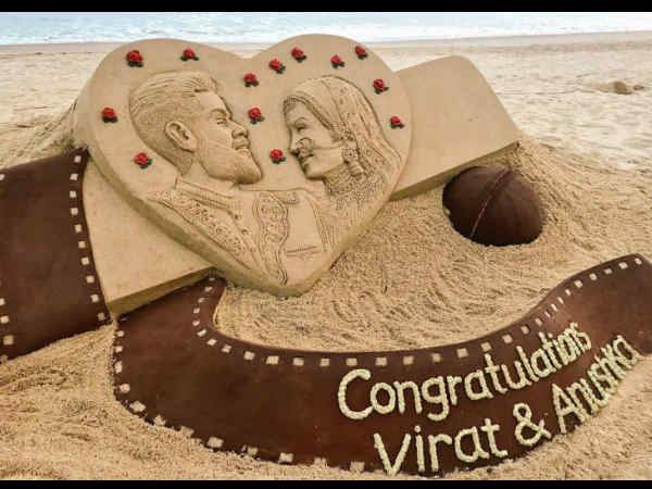 अब ओडिसा के प्रसिद्ध सैंड आर्टिस्ट सुर्दशन पटनायक ने विराट और अनुष्का की सैंड आर्ट के जरिये उन्हें बधाई दी और ये वाकई बेहद खूबसूरत है। सुदर्शन पटनायक की ये तस्वीर लोगों को काफी पसंद आ रही है और सभी उनकी तारीफ करते नहीं थक रहे हैं।