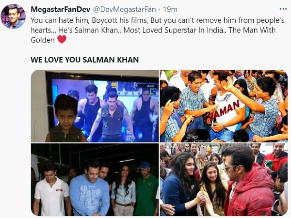 इसके अलावा एक फैन का कहना है कि 'हम सलमान खान के फैन नहीं बल्कि परिवार हैं।' सलमान खान के वर्कफ्रंट की बात करें तो इस समय वो फिल्म राधे, अंतिम और किक 2 जैसी फिल्मों को लेकर चर्चा में हैं। इन फिल्मों का आधिकारिक ऐलान कुछ समय पहले हुआ है।
