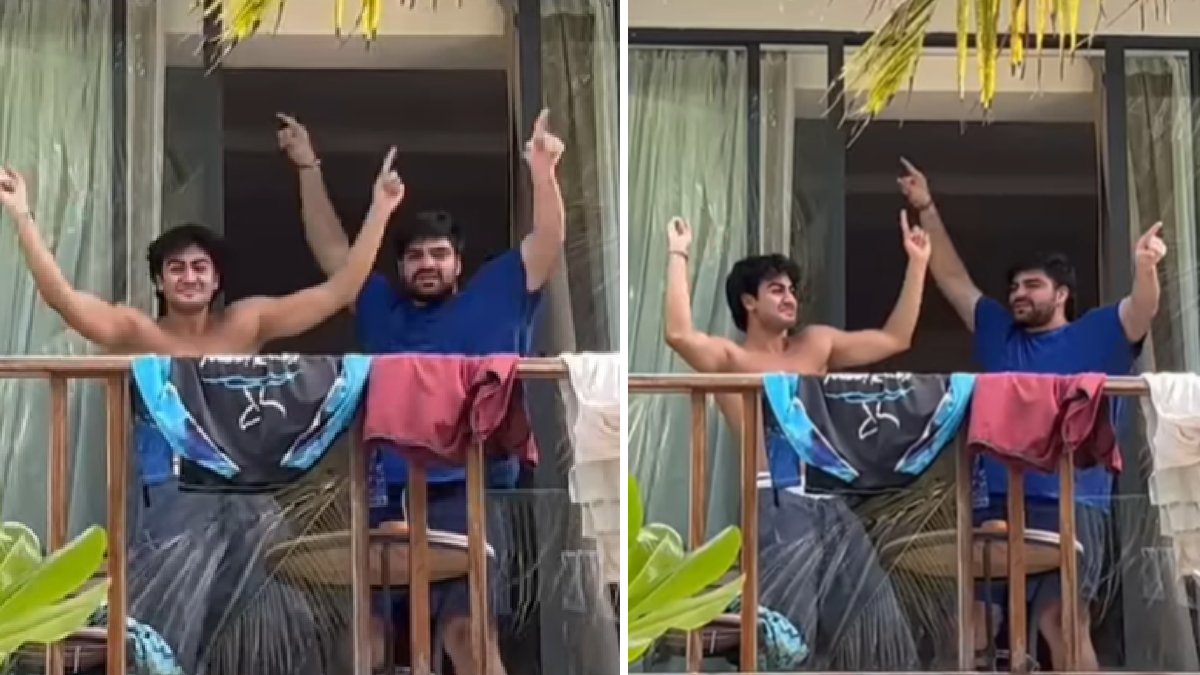 वायरल हो रहे इस वीडियो में अयान और अरहान फुल मस्ती में नजर आ रहे हैं। दरअसल दोनो कजिन्स बालकनी में नजर आ रहे हैं और डांस कर रहे हैं। हालांकि वो ऐसा क्यों कर रहे हैं इसको लेकर कुछ सामने नहीं आया है। अरहान खान शर्टलेस हैं और काफी मस्ती करते हुए दिख रहे हैं। इसके अलावा कुछ और तस्वीरें अयान ने साझा की हैं जिनमें अरहान और वो खुद नजर आ रहे हैं। कभी बीच में दिख रहे हैं तो कभी अलवीरा की बेटी अलीजेह भी साथ में नजर आ रही है। तस्वीरें और वीडियो के सामने आते ही लोग हैरान हैं और कमेंट्स कर रहे हैं।