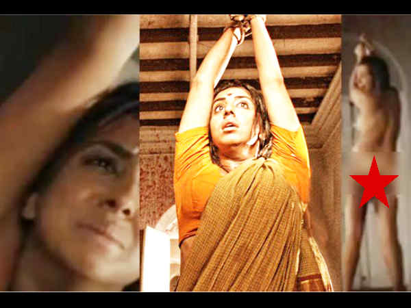 उसके हाथों को ऊपर एक खूंटे से बांध दिया गया। जिसके बाद एक आदमी आकर उसकी साड़ी फाड़कर सारे कपड़े उतार देता है।