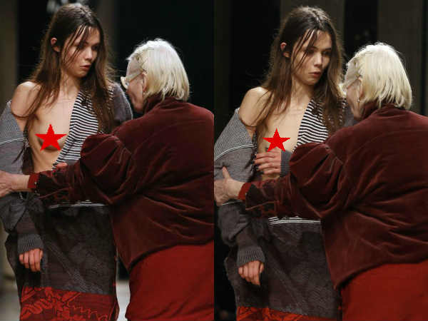 ये महिला थीं ब्रिटिश डिजाइनर विविएन वेस्टवुड। रैंप वॉक के दौरान मॉडल की ड्रेस खुलकर नीचे आ गई और इस तरह मॉडल पूरी तरह टॉपलेस हो गईं। ये सबक नजारा सब देख ही रहे थे कि भीड़ के उठ कर डिजाइनर विविएन आईं और ड्रेस संभालने में मॉडल की मदद की।