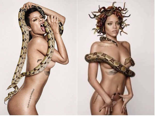 जी हां, कुछ समय पहले एक मैग्जीन के लिए करवाए गए एक फोटोशूट में न्यूड रिहाना अपने बदन को एक मोटे से अजगर से ढ़कती दिखाई दीं। यही नहीं रिहाना ने अपने सिर को भी कई छोटे-छोटे सांपों से ढ़क रखा है। रिहाना की इन तस्वीरों ने सोशल मीडिया पर मौजूद उनके फैंस को चौंका दिया था।