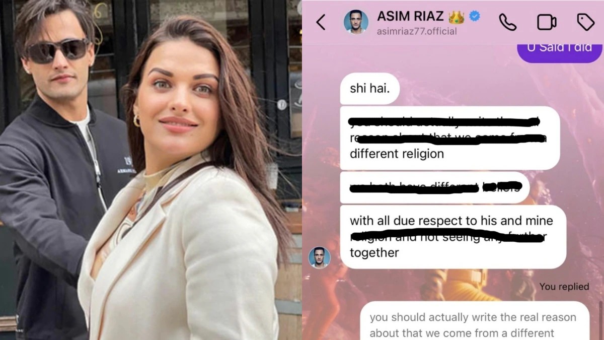 हमारे रिश्ते का सफर बहुत अच्छा रहा और हम अपनी जिंदगी में आगे बढ़ रहे हैं।'' आसिम और हिमांशी का जो चैट लीक हुआ है उसमें साफ समझ आ रहा है कि दोनों एक दूसरे से सिर्फ धर्म को लेकर अलग हो रहे हैं।