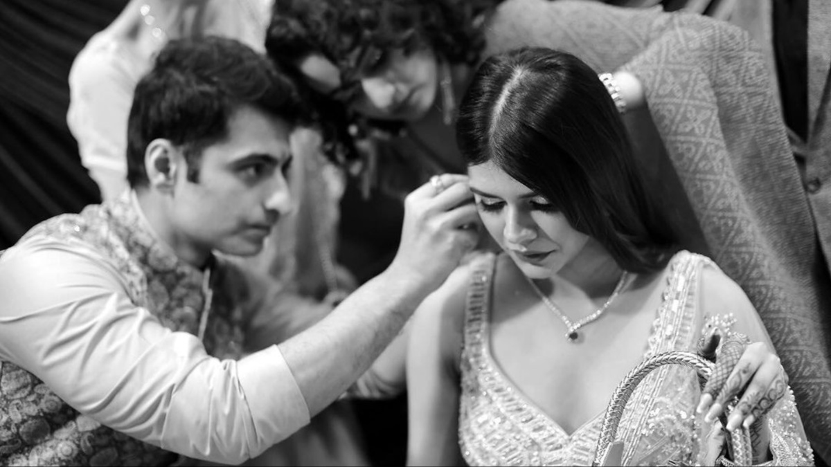 मुस्कान राजपूत ने सोशल मीडिया पर एक मोनोक्रोमैटिक तस्वीर अपलोड की, जिसमें हर्षद अरोड़ा अपनी मंगेतर की बालियां ठीक करते हुए दिखाई दे रहे हैं। फोटो अपलोड करते हुए मुस्कान ने कैप्शन में लिखा, "एक साथ अगला कदम उठाते हुए #मुस्कानराजपूत #हर्षदारोरा #एंगेज्ड #लव" दोनों ने खूबसूरत एथनिक आउटफिट पहना हुआ है।