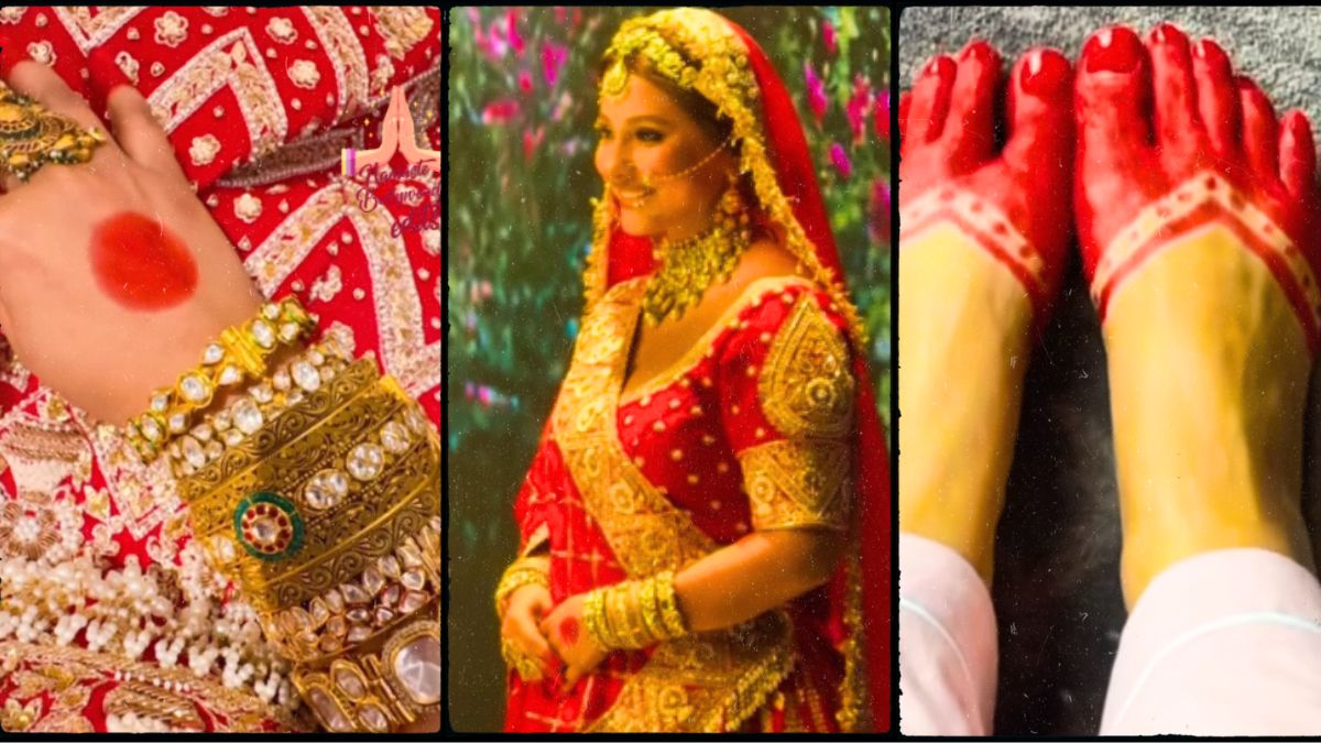 हाल ही में हिना खान के वीडियो और फोटोज सोशल मीडिया पर धड़ल्ले से वायरल हो रहे हैं। इस वीडियो में देखा जा सकता है कि हिना खान लाल जोड़ा पहने हाथों में मेहंदी लगाए और पाव में आलता लगाए नजर आ रही हैं। हिना किसी खूबसूरत दुल्हन से कम नहीं लग रही हैं। बात कि कैंसर के इलाज के बीच यह हिना खान का पहला प्रोजेक्ट है। हिना बहुत ही कॉन्फिडेंस से वॉक करती नजर आ रही हैं। हिना खान के इस लुक को देख फैन्स तो दीवाने ही हो गए हैं।
