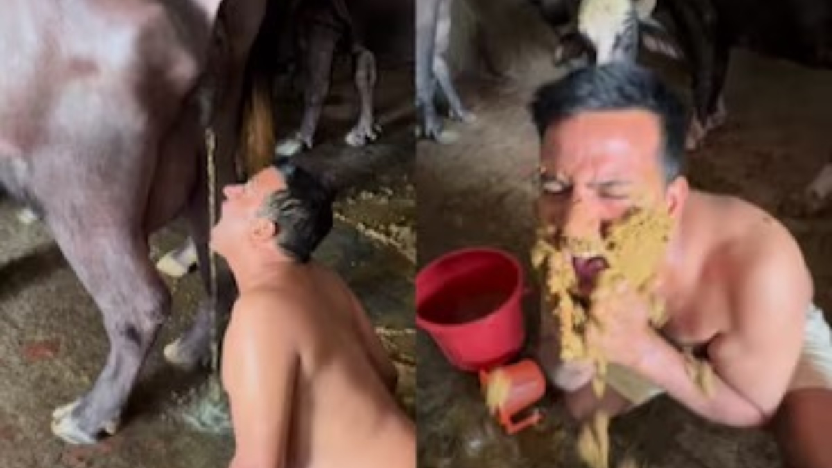 Video: भैंसों का ताजा गोबर खाने को मजबूर हुआ सुपरस्टार, वीडियो देख लोग को आ रही उल्टियां
